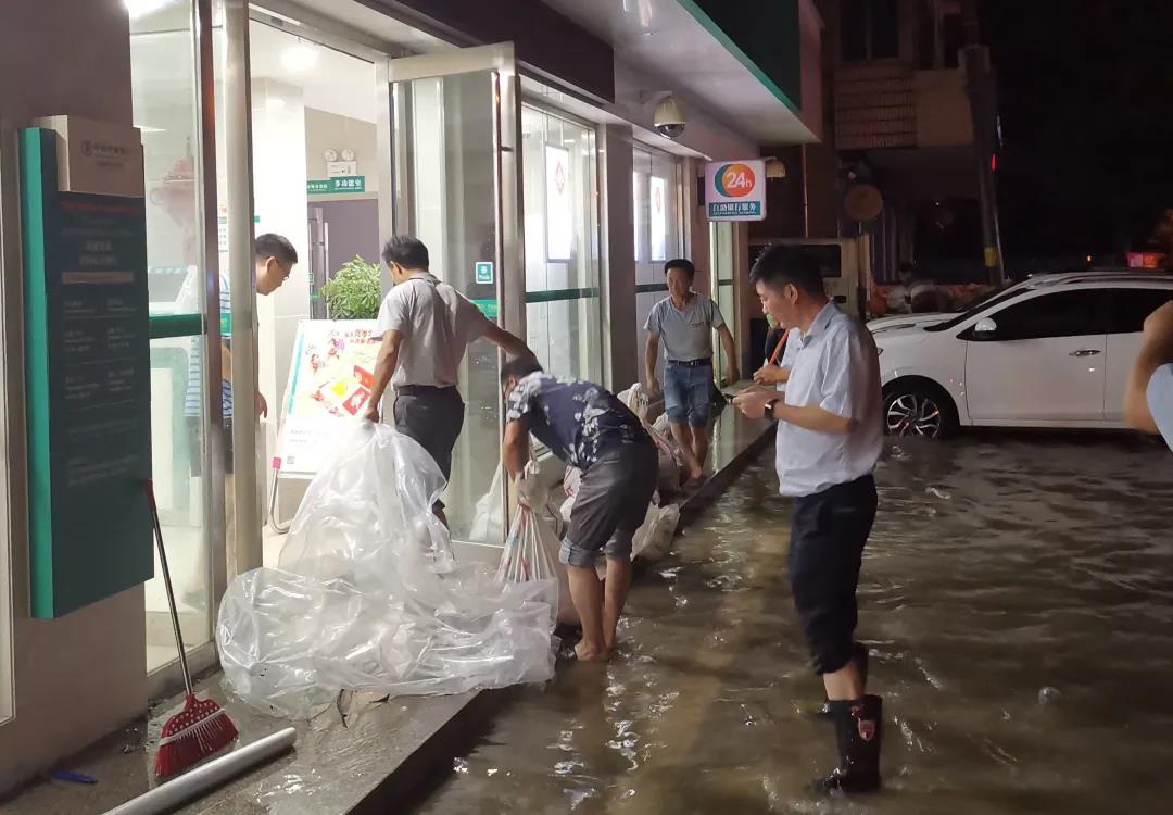 合肥分行辖属四县一市支行是遭受洪灾的重灾区。面对汛情,受灾网点全员紧急行动,及时清出ATM现金,转移生产网终端、重要档案材料,顶风冒雨集袋取土,以沙包堵住各个门口,筑实抗洪第一道防线。